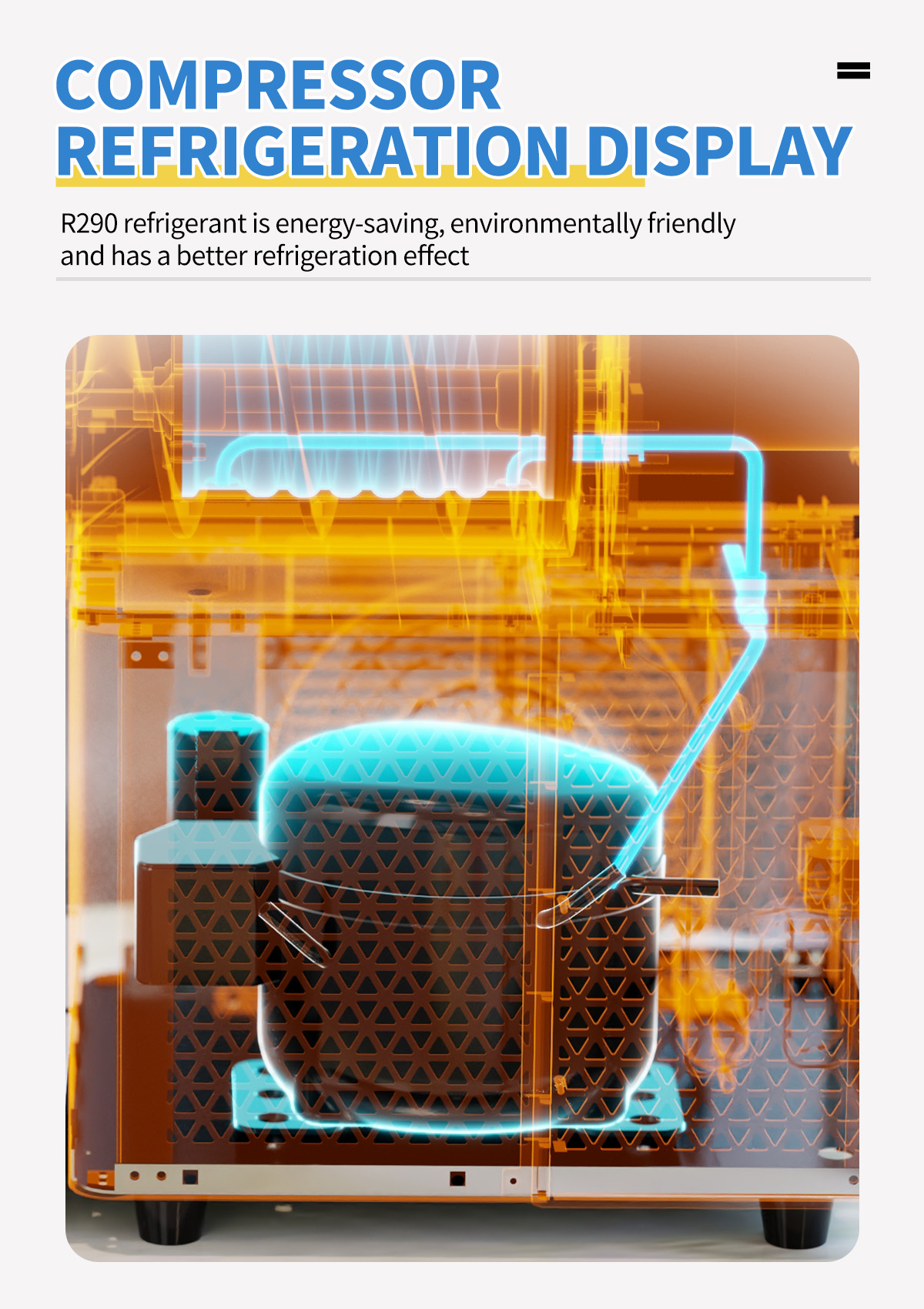 R290 refrigerant is energy-saving,environmentally friendly and has a better refrigeration effect.
