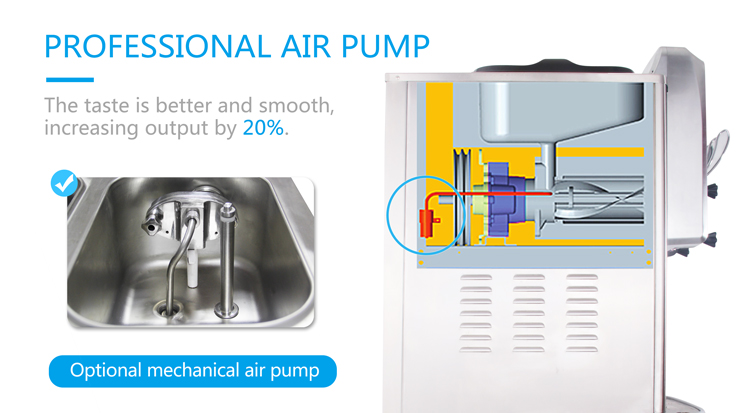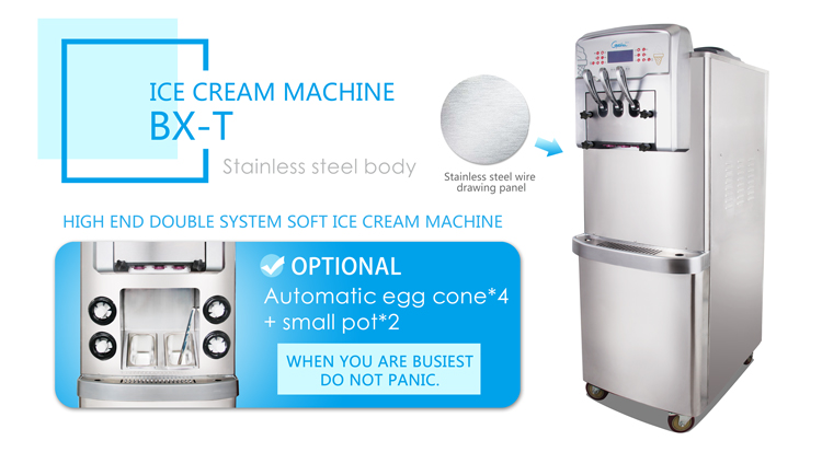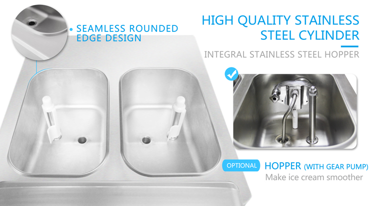 | Other optional | C:Rainbow system R: Pre-cooling systemE:Air pump function P:Pasteurization T:double control systems L:mixer in the hopperD1:one cone holder D2:Two cones holder | |||||||