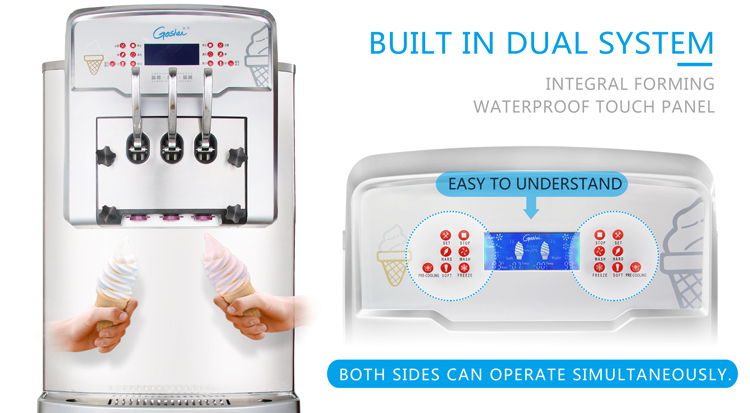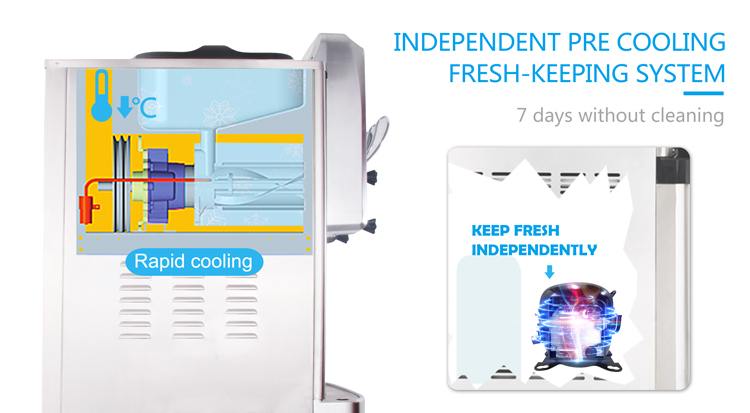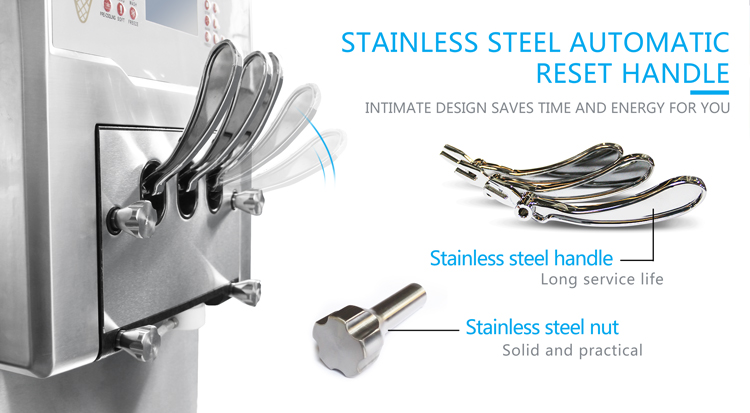 4.Make pasteurization to raw material hopper and frozen cylinder automatically to ensure the food safety.